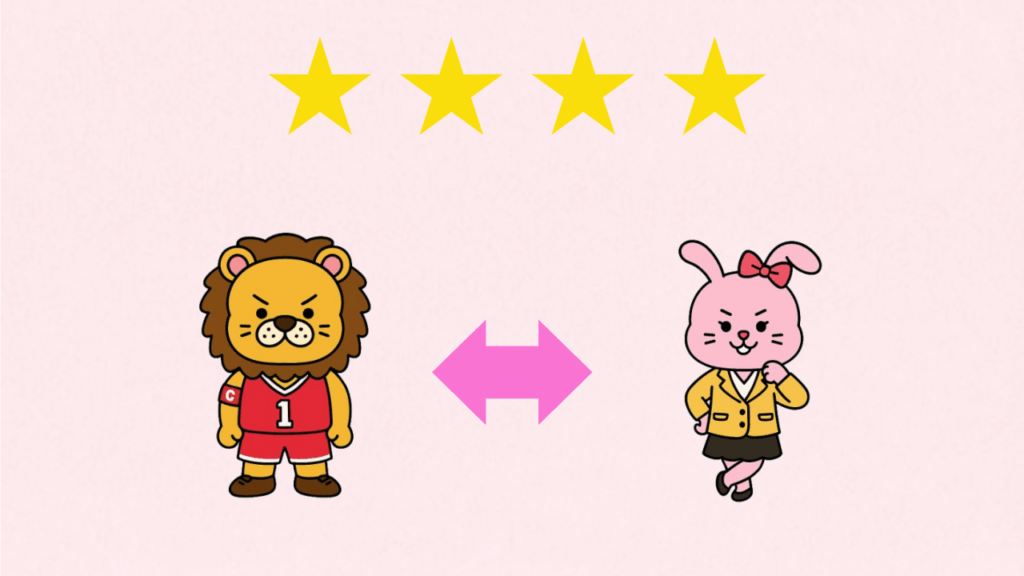 キャプテンライオン(LAPE)とちゃっかりうさぎ(FCRE)の相性診断【恋愛タイプLAPE×FCRE】