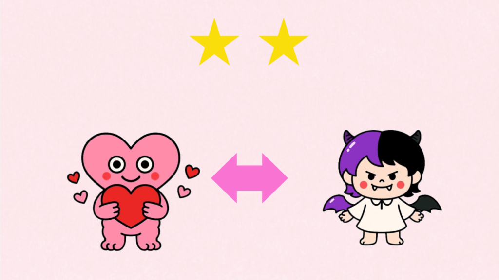 天使モードとデビルモードのギャップが「不安」ではなく「個性」として受け止められやすくなります。